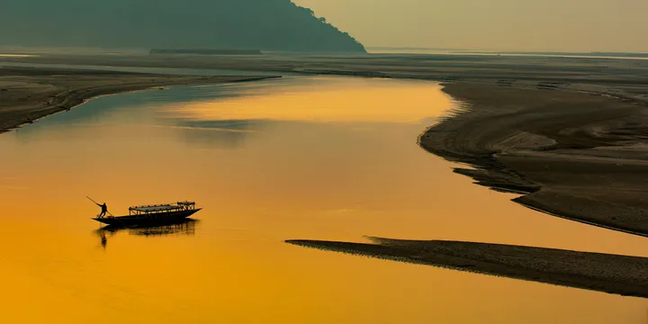 Originating in the Himalayas at the lofty altitude of 17,366 feet, the Brahmaputra is fed by the Chemayungdung Glacier and traverses one of the world’s largest canyons before entering India. Here, the river expands and flows in braided channels that continuously shape the landscape. It is the lifeblood of the region; locals utilize it for irrigation and transport, myriad fruit trees and plants crop up on its banks, and wildlife, including the one-horned rhino, call its shores home. Even the elusive river dolphin can sometimes be spotted playfully navigating its waters.
