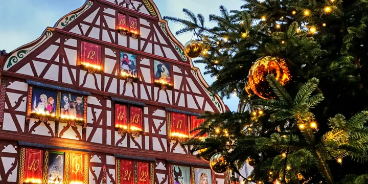 The medieval Old Town of Bernkastel transforms itself during the holidays, with its cobblestone streets decked out in lights and the aroma of mulled wine, gingerbread and almonds filling the air. Picturesque half-timbered houses form the backdrop for about 40 stalls, where vendors showcase seasonal wares such as traditional handicrafts and jewelry. The market square is also home to the region’s largest Advent calendar, festively displayed in the window of a local pharmacy. The market’s highlight is the arrival by boat of Santa Claus, accompanied by swimmers carrying torches.