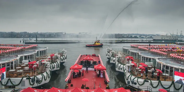 Viking River Cruises sets a Guinness World Record for “The Most Ships Inaugurated in One Day by One Company” with the simultaneous christening of 10 new Viking Longships on March 20 in Amsterdam.